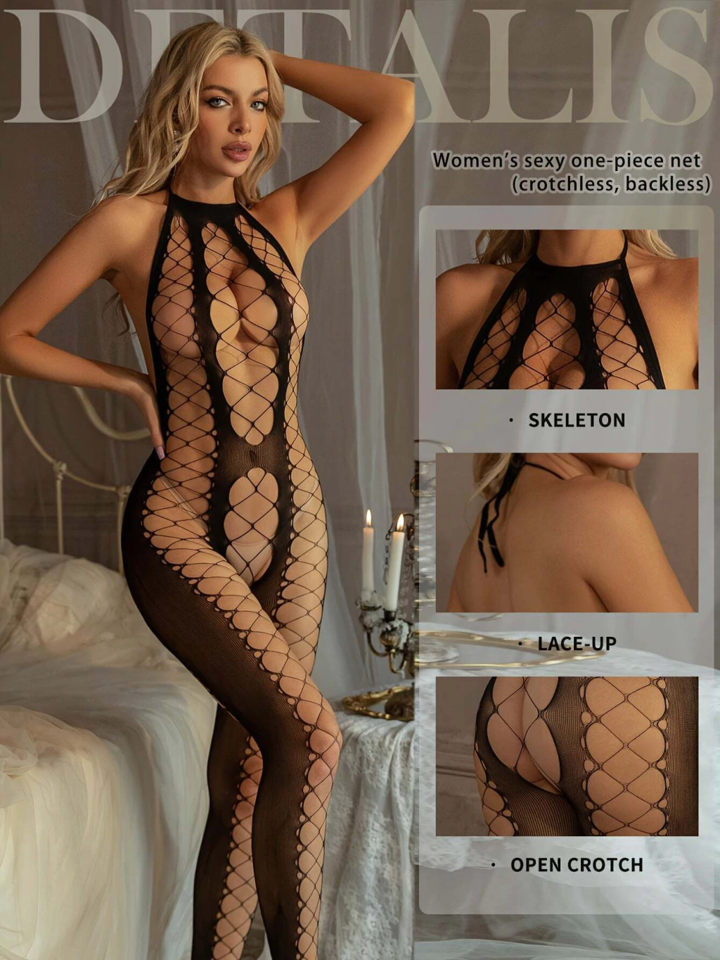 Este body apresenta um [design irresistível], que combina um decote halter sofisticado com um estilo sem costas, proporcionando um visual audacioso e sedutor. A estrutura de malha de peixe com aberturas grandes não só destaca suas curvas, como também mantém conforto excepcional devido à sua alta elasticidade. Disponível na cor preta clássica e atemporal, este body oferece uma elegância que nunca sai de moda. 🌟