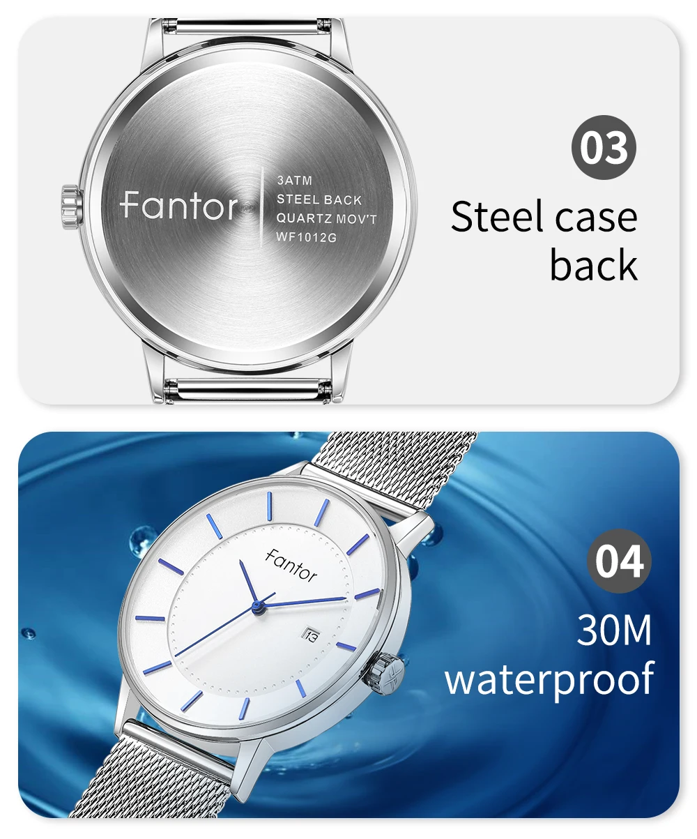 Além de seu apelo estético, o FANTOR WF1012G é altamente funcional e resistente à água, adequado para qualquer atividade diária.